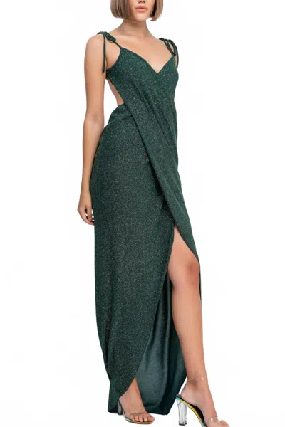 Glitter Long Sleeve Cut Out Mini Dress In Green