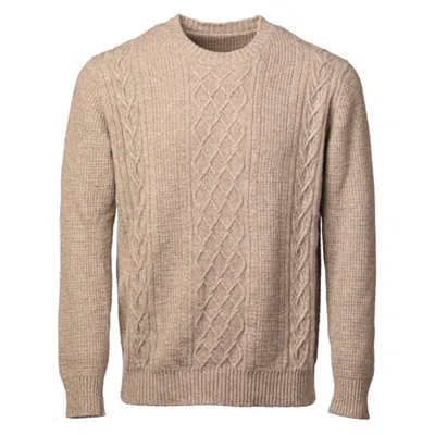 Men's Neutrals Unisex Taupe Mid-weight Cable Feature Cashmere Crew Neck Sweater