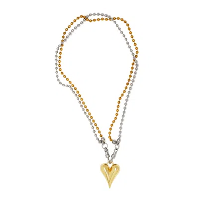Women's Black / Gold / Silver Chrome Heart Necklace – Stainless Steel With Mixed Finishes In Multi