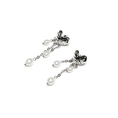 Women's White / Silver Heartdrops Drop Earrings With Aaa Pearls In Multi