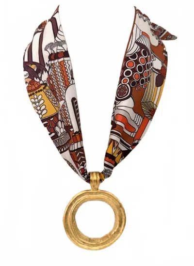 Women's Scarf Charm Necklace In Brown Orange In Gold