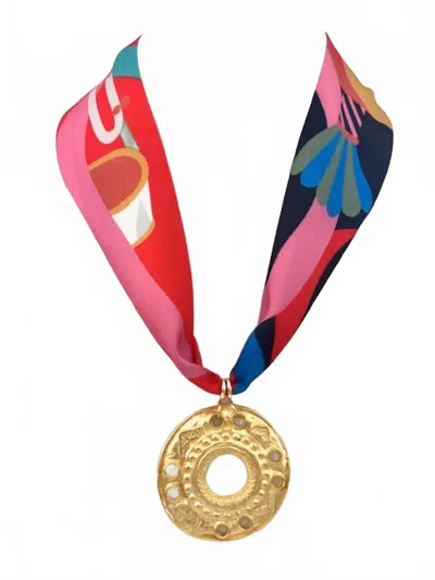 Women's Scarf Charm Necklace In Red Brights In Gold