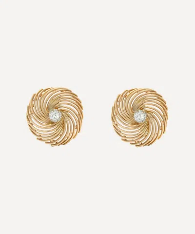 18ct Gold Retro Diamond Swirl Stud Earrings