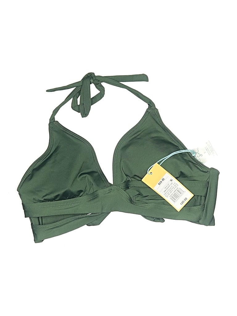 Swimsuit Top Green Solid Pattern Swimwear