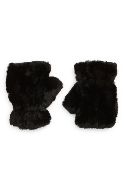 Faux Fur Fingerless Mittens In Black