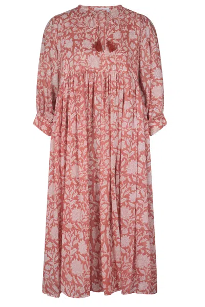 Women's Floaty, Floral Summer Midi Dress, Summer Dress With Pockets, Reese Sundress In Pink