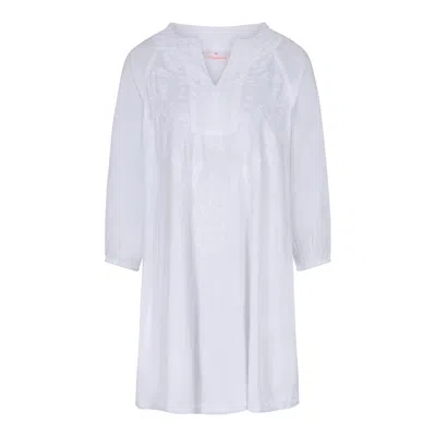 Women's White Cotton Beach Kaftan, Embroidered Resortwear Kaftan Grace Pink