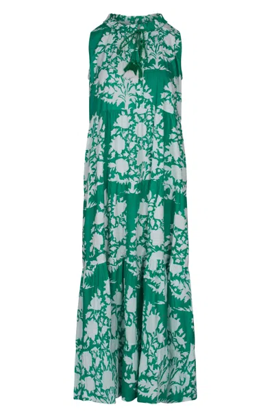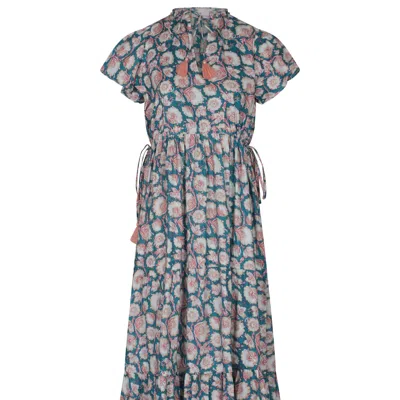 Women's Green / Purple Block Printed Summer Maxi Dress With Pockets Nina In Blue