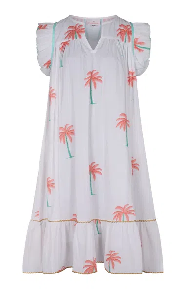 Women's Summer Dress, Floaty White Cotton Summer Midi Dress With Pockets Palmeraie