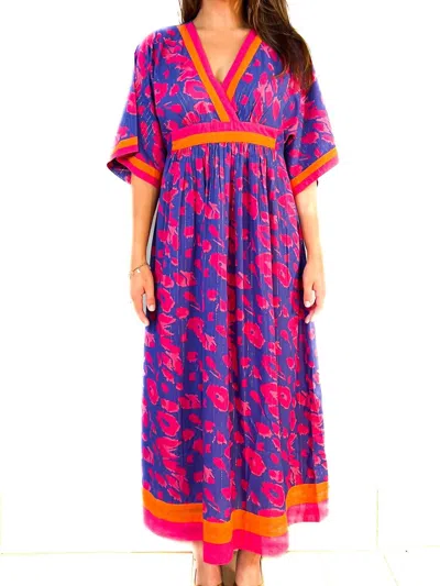 Vintage Kaftan Dress In Leopard Surf/pinks In Multi