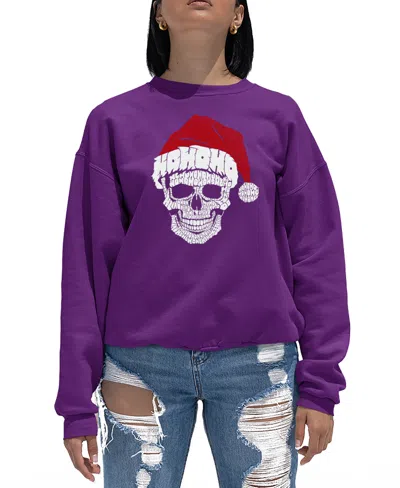 Women's Santa Skull Word Art Crewneck Sweatshirt In Purple