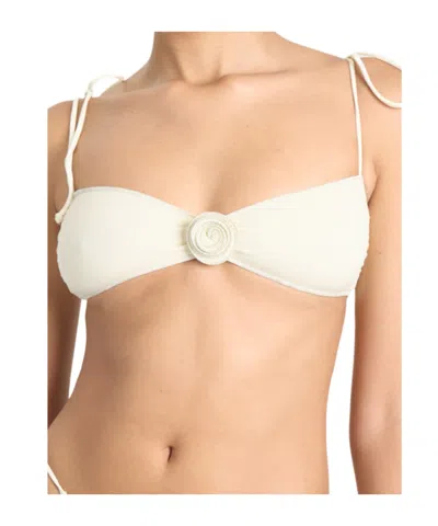 Rose-detail Bandeau Bikini Top In White