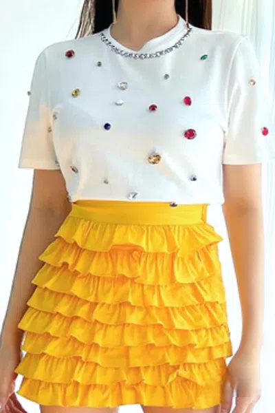 Crown Jewels Embellished Cotton Tee In White