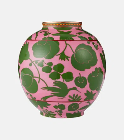 Wildbird Medium Porcelain Vase In Wildbird Yellow & Purple