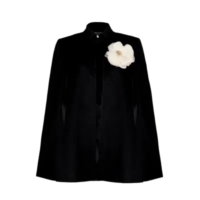 Women's Black / Gold / Neutrals Laines Couture Wool Blend Zip Cape With Embellished Cream Corsage - In Black/gold