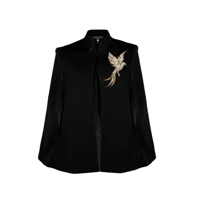 Women's Black Laines Couture Tailored Cape With Embellished Bird Of Paradise