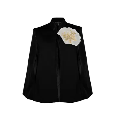 Women's Black / Gold Laines Couture Tailored Cape With Embellished Black Corsage In Black/gold