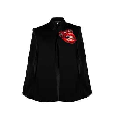 Women's Black / Red Laines Couture Tailored Cape With Embellished Red Love Lips In Multi