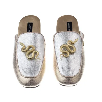 Women's Gold / Silver Classic Mules With Double Gold Snake Brooches - Silver & Gold In Gold/silver