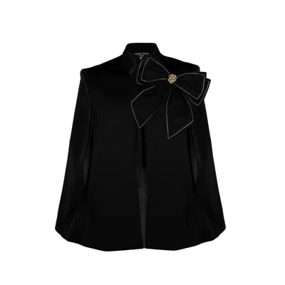 Women's Laines Couture Tailored Cape With Embellished Black & Gold Bow