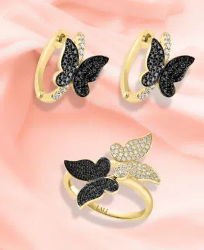 Black White Diamond Butterfly Hoop Earrings Ring Jewelry Collection In 14k Gold