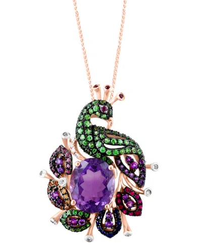 Multi-gemstone (4-1/3 Ct. T.w.) Peacock Pendant Necklace In 14k Rose Gold, 16" + 2" Extender