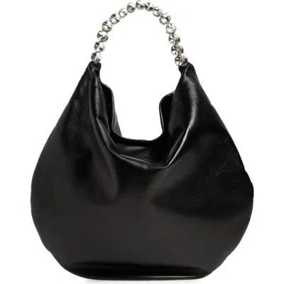 Mini Rhinestone Dotted Satin Hobo Bag In Black