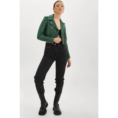 Candace Lamb Leather Bomber Jacket In Dark Olive