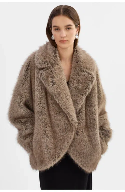 Danika Leopard-printed Faux Fur Cropped Coat In Beige Leopard
