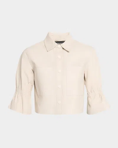 Carolina Cropped Ruffle-sleeve Leather Jacket In White