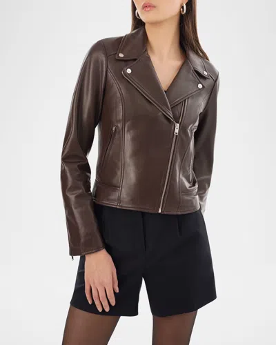 Kelsey Sheepskin Leather Moto Jacket In Dark Brown