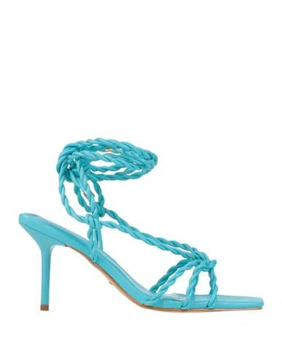Woman Sandals Azure Size 10 Textile Fibers In Blue