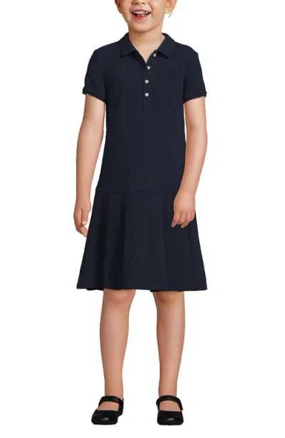 Kids' School Uniform Girls Short Sleeve Mesh Pleated Polo Dress In Classic Navy