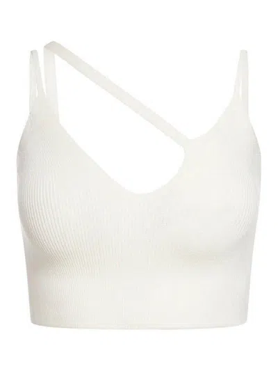Hemline Asymmetry Waistband Elastic Texture Ribbed In White