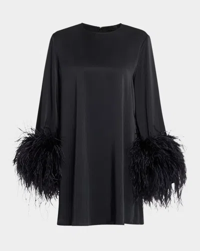 Double-face Satin Shift Dress With Ostrich Feathers In Black