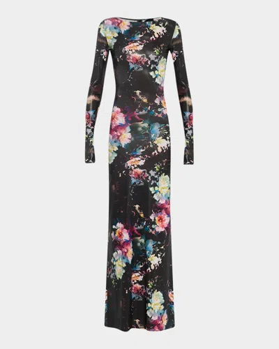 Floral Jersey Long-sleeve Gown In Multi