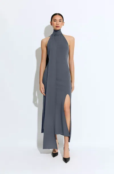 Matte Viscose Halterneck Dress In Blue
