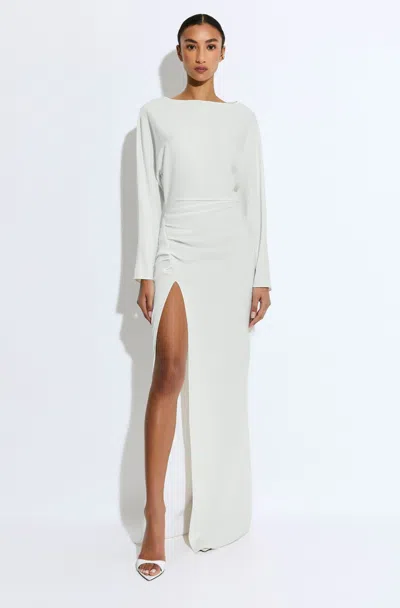 Stretch Drape Crepe Off The Shoulder Dress In White