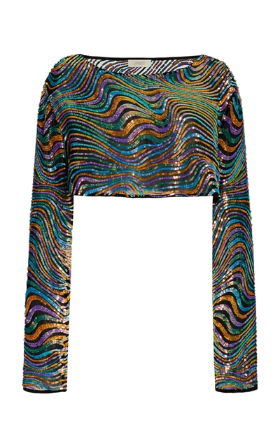 Women's Swirl Sequin Silk Cropped Top In Multi