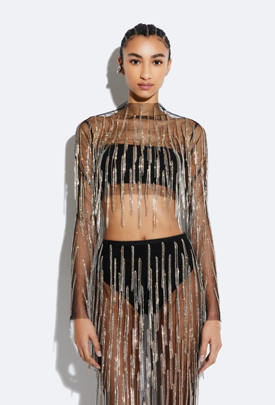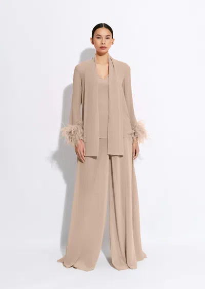 Lightweight Georgette Scarf Top With Feathers In Oat