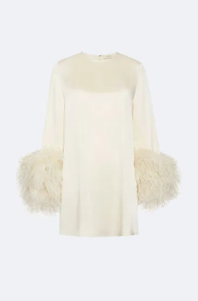 Lightweight Georgette Cape Tee With Feathers In Cream