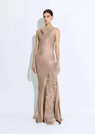 Matte Viscose Intarsia Dress With Feathers In Pink