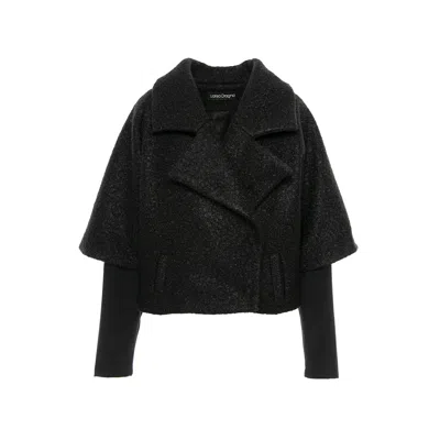Women's Black Faux Fur Jacket With Double-sleeve Effect