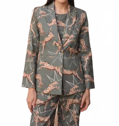 Leopard Stars Blazer In Green In Gray