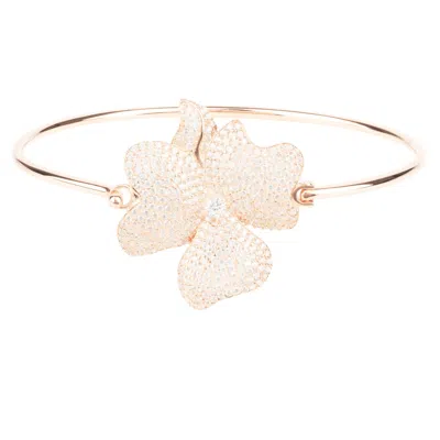 Women's White / Rose Gold Flower Large Statement Cuff Bracelet Rosegold In Multi