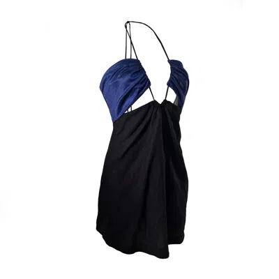 Women's Black / Blue Linen Dress - Blue Flame In Multi