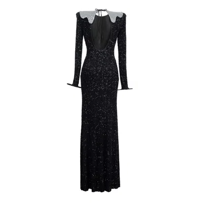Women's Black / White Sheer Crystal-embellished Gown In Multi