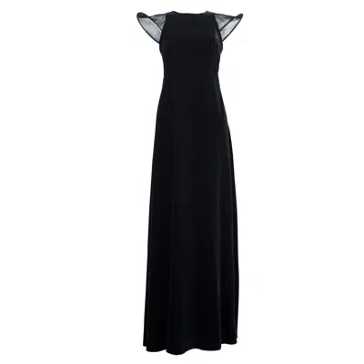 Women's Black / Grey Velvet Angel Sleeve Gown In Multi