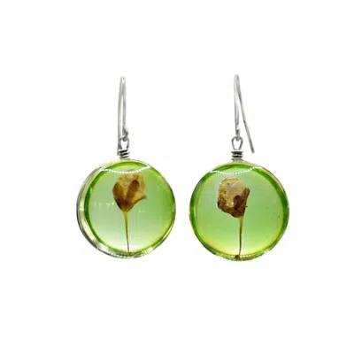 Women's Green / Silver / Neutrals Emerald Dew Blown Glass Earrings In Multi