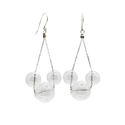 Women's Neutrals / Silver Mickey – Blown Glass Bubble Earrings